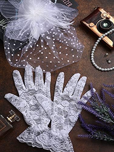 Introducing the Honoson 4 Pieces Fascinators Hat for Women Headband Tea Party with Short Lace Gloves