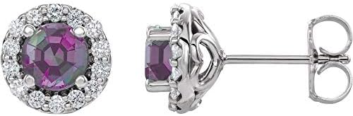 Solid Platinum Lab-Created Alexandrite and 1/4 Diamond Stud Earrings (8.4mm x 8.1mm) (.25 Cttw)