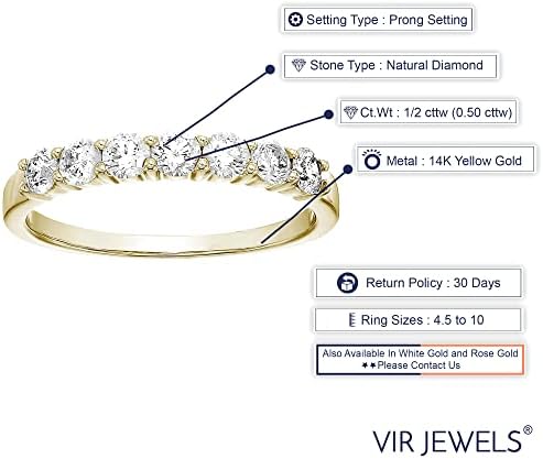 Introducing the Vir Jewels 1/2 carat (ctw) Diamond Wedding Anniversary Band for Women, a stunning symbol of love and commitment. Crafted in 14K yellow gold, this round diamond engagement ring features 7 beautifully prong-set stones, totaling 0.50 carats. Available in sizes 4-10, this exquisite band is perfect for celebrating anniversaries, milestones, or as an enchanting symbol of deep affection.